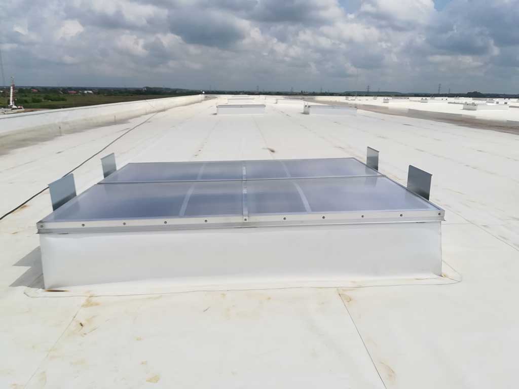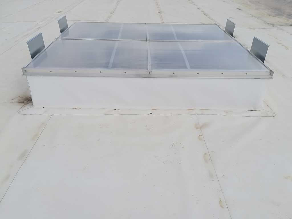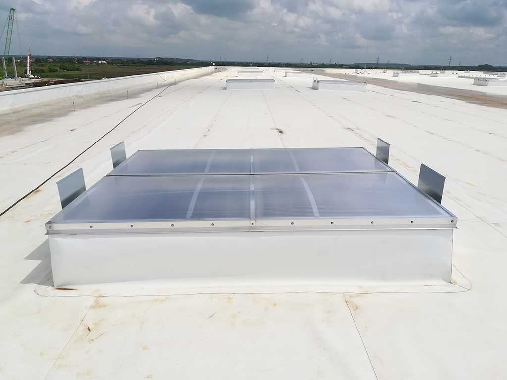 Echipate cu grilaj anticădere, cupole din policarbonat multicelular 16mm, izolatie termică foarte bună,